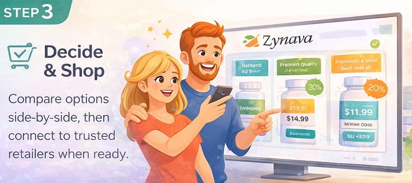 We provide information and guidance. You decide what to do with it.ZYNAVA never pressures you to purchase supplements. Browse recommendations for vitamin B12, explore probiotic options, research collagen formulations, compare omega-3 products—all at your own pace without countdown timers, limited-time offers, or aggressive sales tactics. Our role is education and guidance, not sales conversion. Whether you buy a supplement from one of our retail partners or not, we consider it a success if you leave more informed than when you arrived. Take your time. Save your results. Come back later. Discuss with your healthcare provider. Do more research. There's no rush because we have no inventory to sell and no quotas to meet.